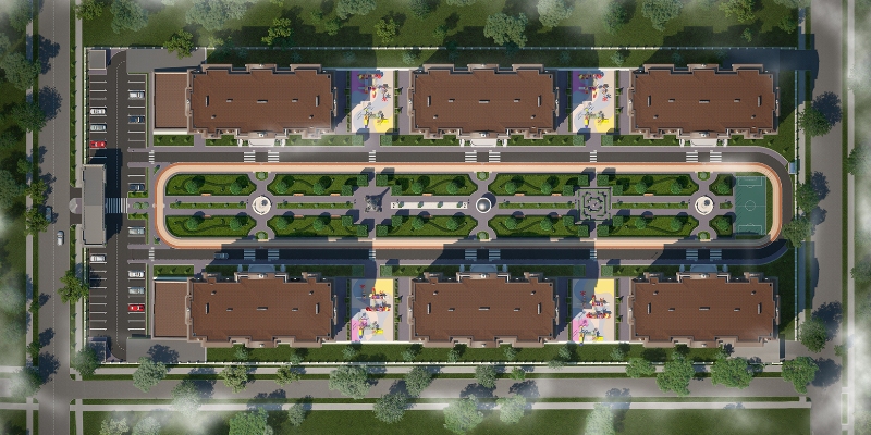 Расположился вдали от шумного центра, куда легко добраться без пробок, где всегда найдется место для парковки, где можно гулять с детьми и бегать по утрам